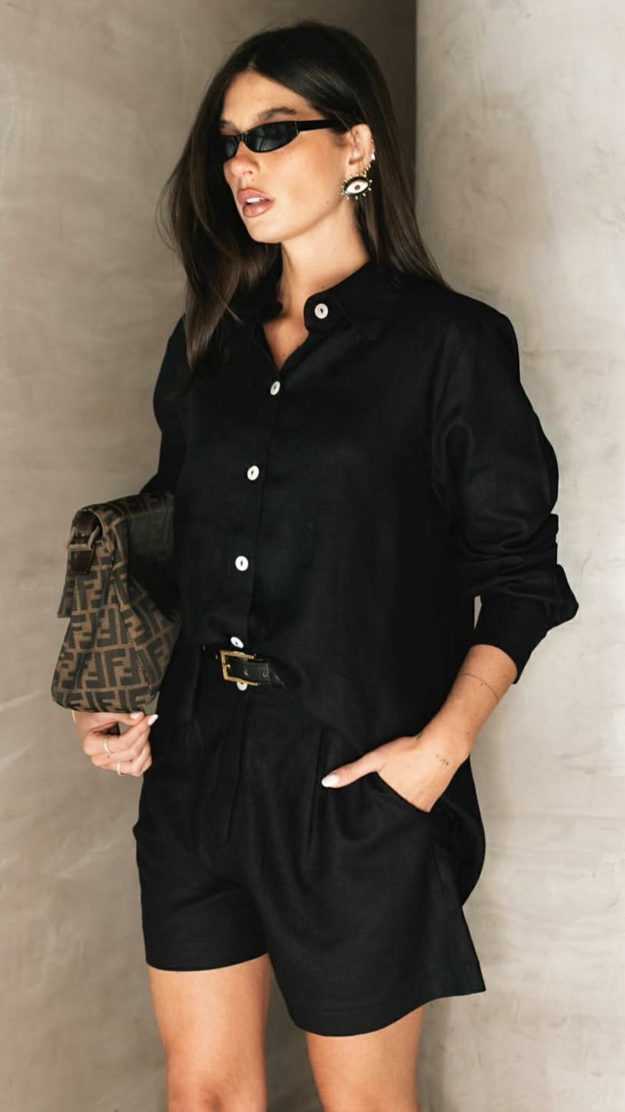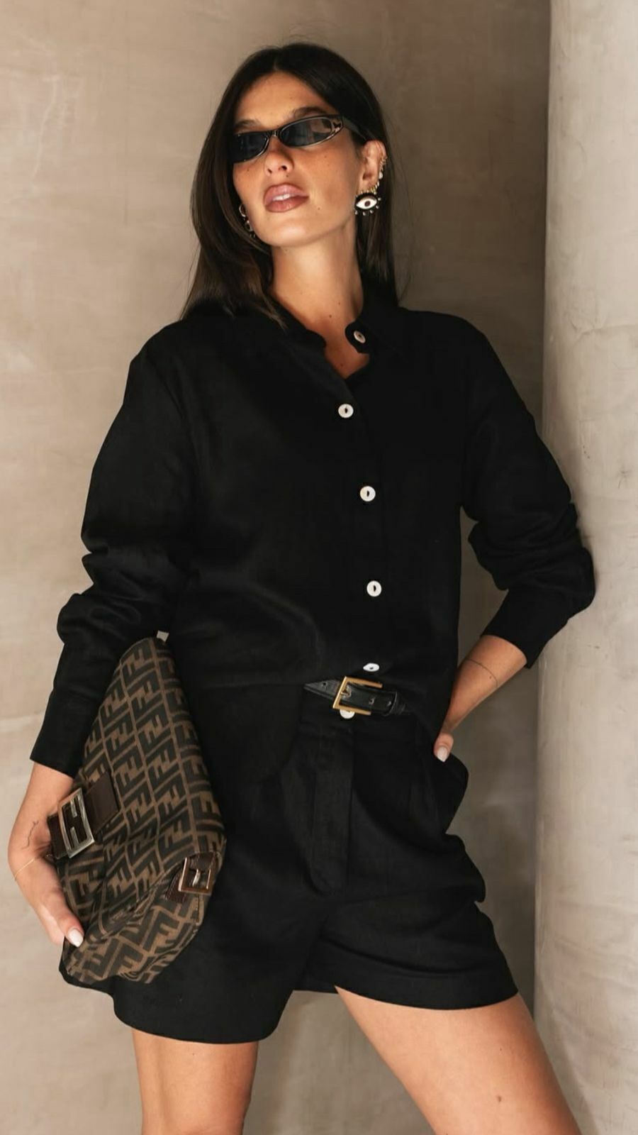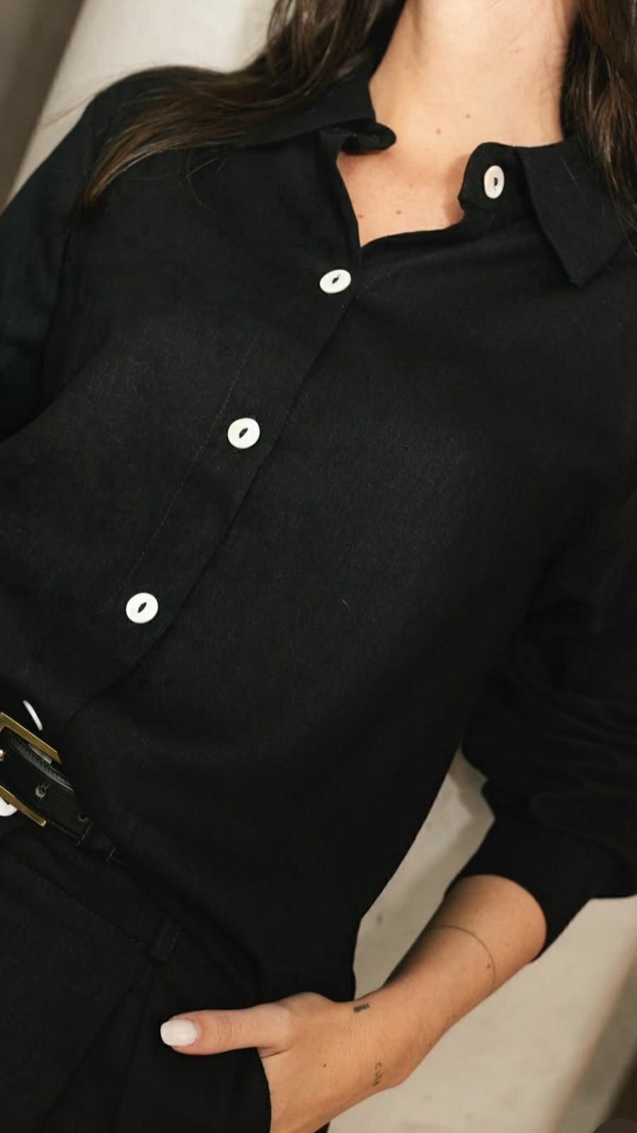 Camisa em linho fechamento frontal com botões. Clássica e atemporal.