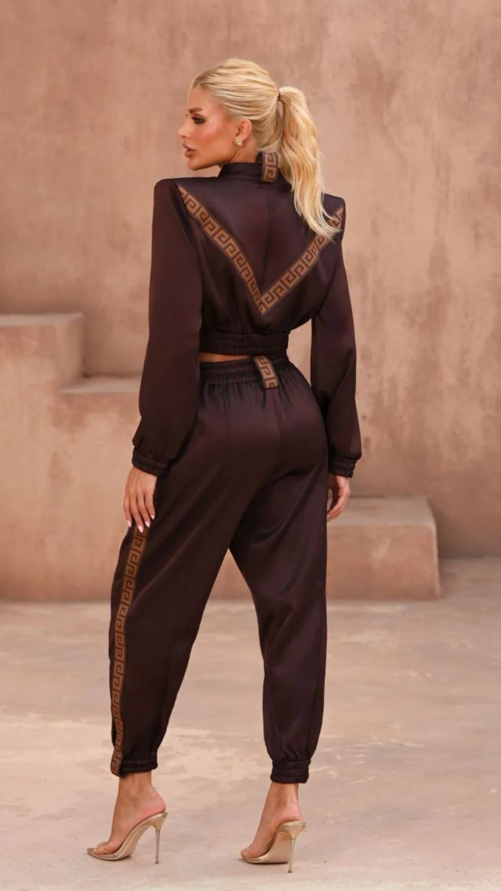 O Conjunto Noa é a combinação perfeita de estilo e conforto. Confeccionado em tecido acetinado com brilho suave, traz um ar sofisticado e moderno para diversas ocasiões. O design é realçado pelos detalhes geométricos em viés, que conferem um toque exclusivo e fashionista.