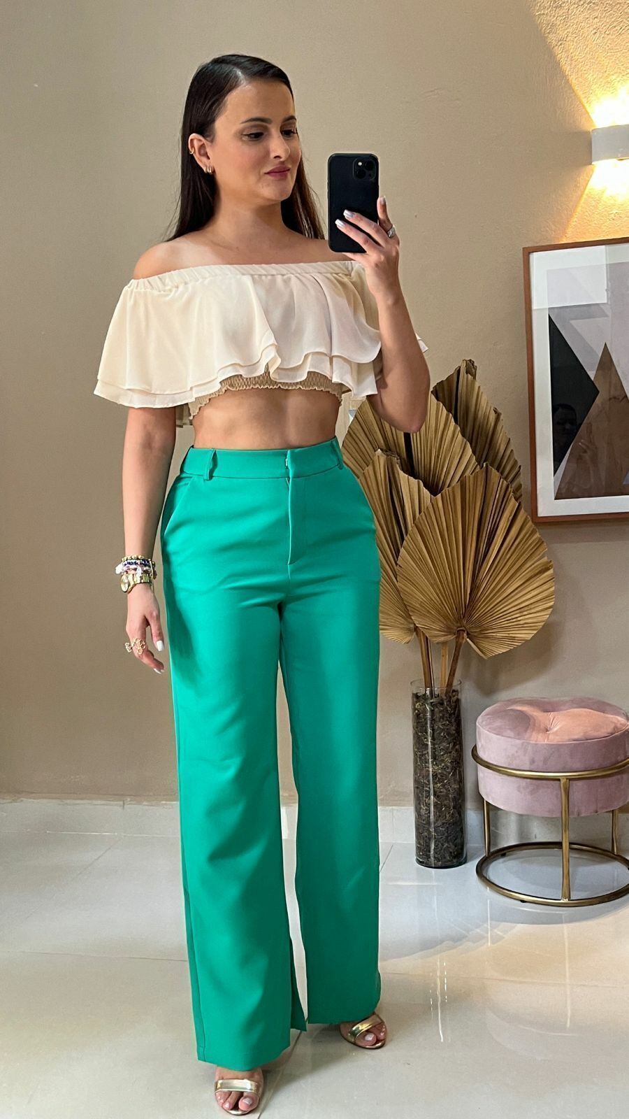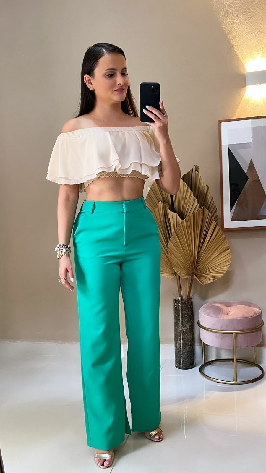 Cropped babado ombro a ombro com elástico. Essa peça é sofisticada e fashionista!