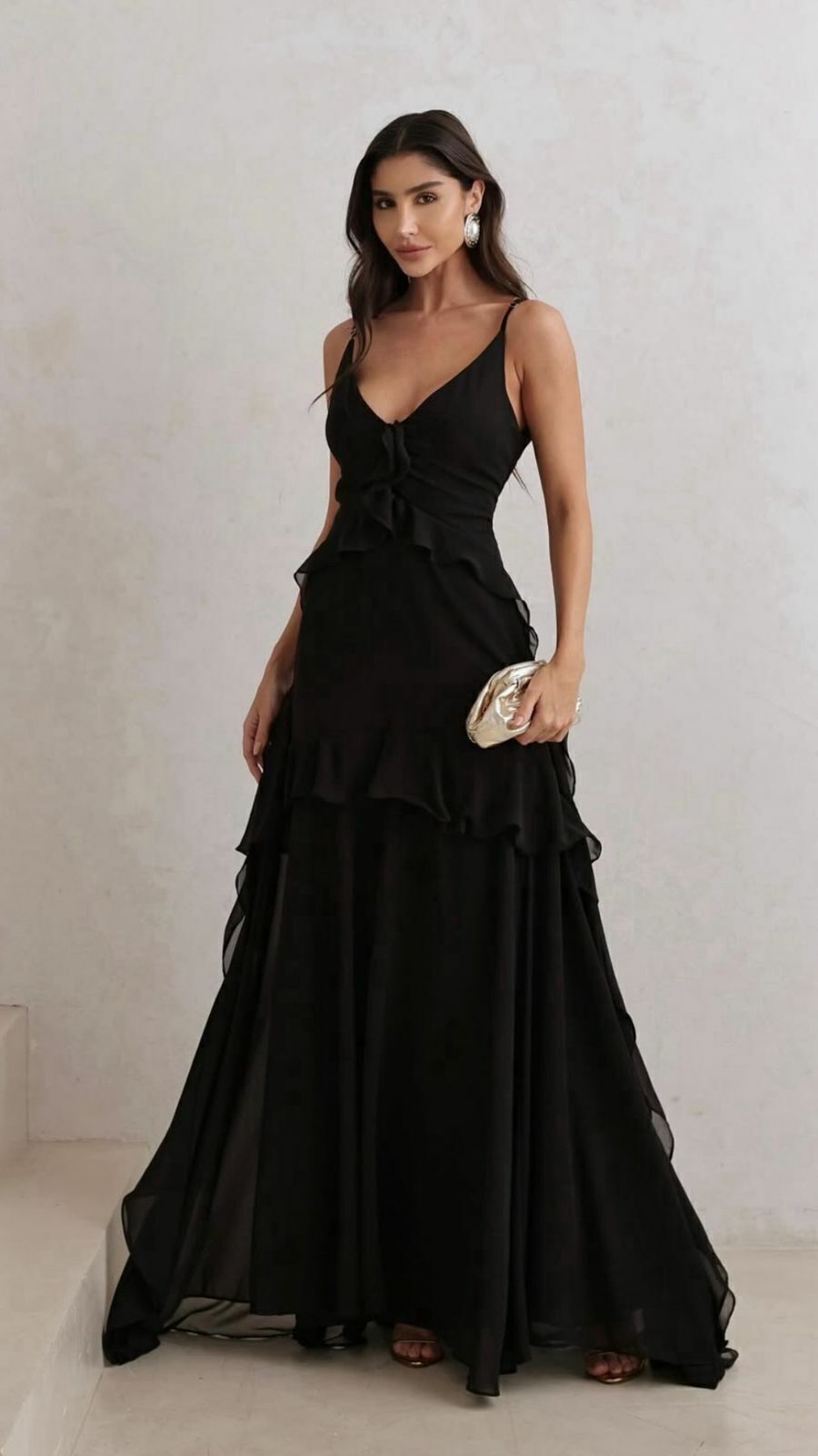 O vestido Júlia é uma peça elegante e sofisticada, perfeita para adicionar um toque de romantismo ao seu visual. Confeccionado em Chiffon, longo e possui babados estrategicos. Possui forro.
