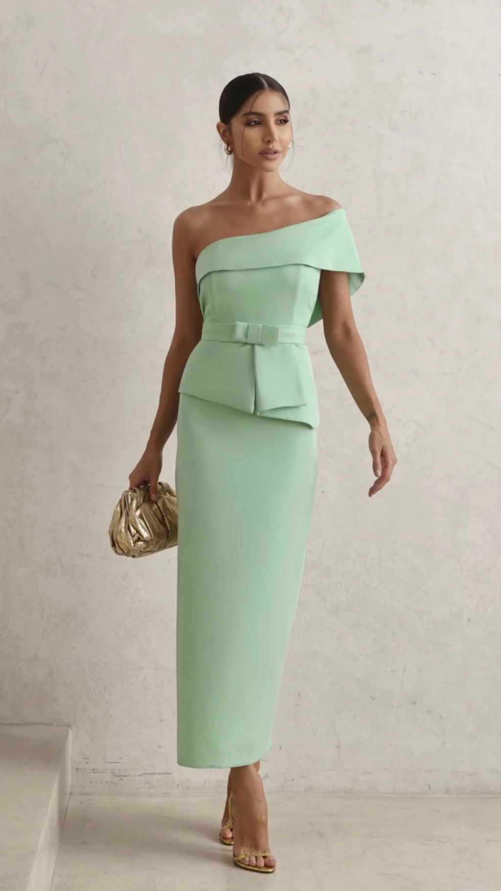 Vestido Iara é uma peça encantadora que combina com elegância, modernidade e estilo romântico. Possui um ombro só com detalh, longuete/midi. Sugestões de eventos para usá-lo: festas, formaturas, aniversários, office look, pré-wedding, casamentos intimistas, batizados, casamento no civil.