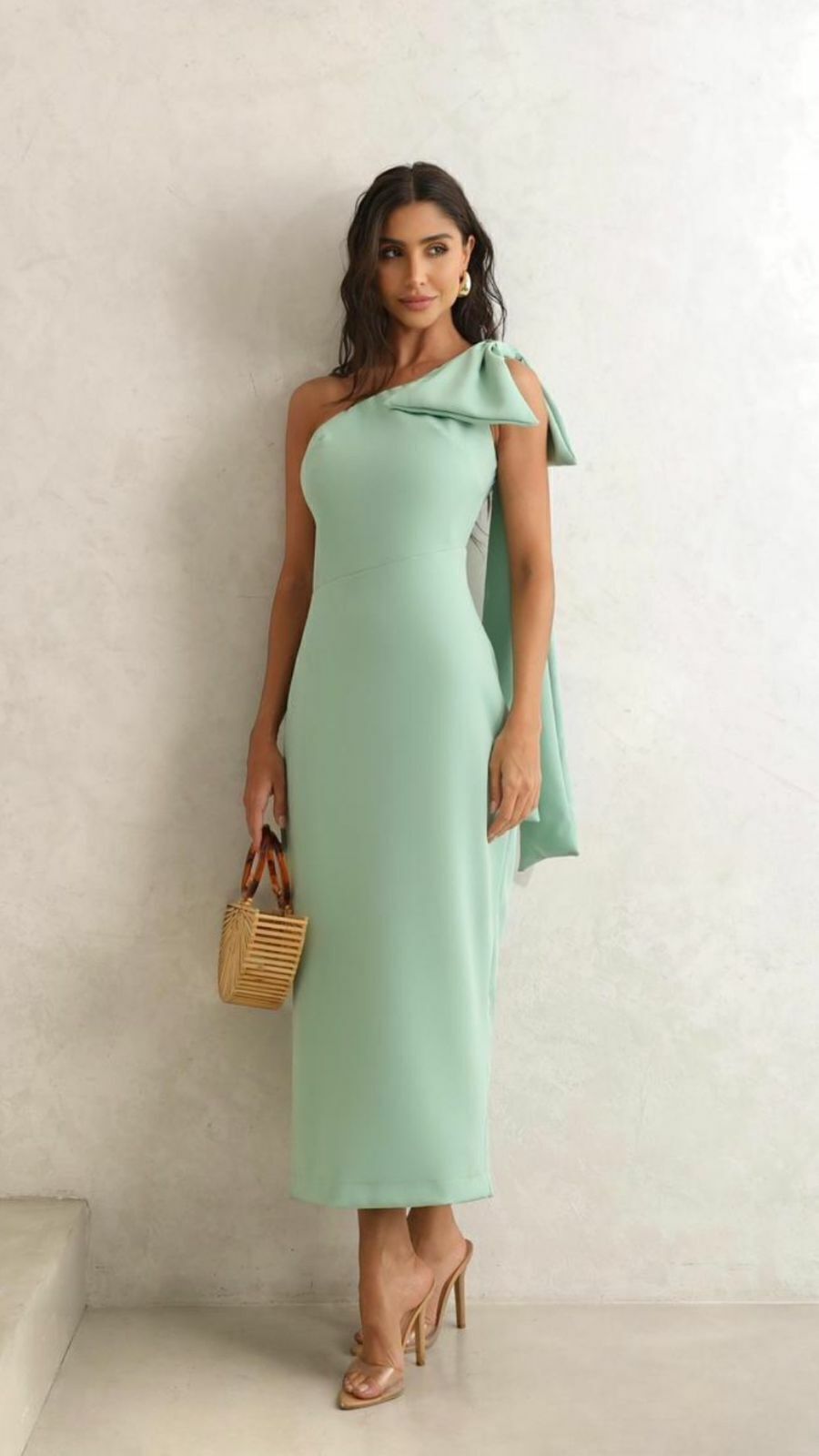 Vestido Paula é uma peça encantadora que combina com elegância e estilo romântico. Possui um ombro só com detalhe em laço, longuete - comprimento midi. Sugestões de eventos para usá-lo: festas, formaturas, aniversários, office look, pré-wedding, casamentos intimistas, batizados, casamento no civil.