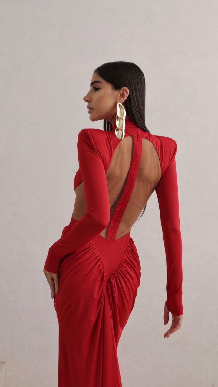 Vestido longo Yume é a definição de elegância sofisticada com um toque de ousadia. Confeccionado em jersey, ele combina conforto e caimento impecável, valorizando cada curva do corpo. Com modelagem justa, gola alta e mangas longas, é uma peça poderosa que equilibra sensualidade e sofisticação. As ombreiras estruturam a silhueta, adicionando imponência ao visual. Ideal para ocasiões noturnas ou eventos que pedem um look marcante.